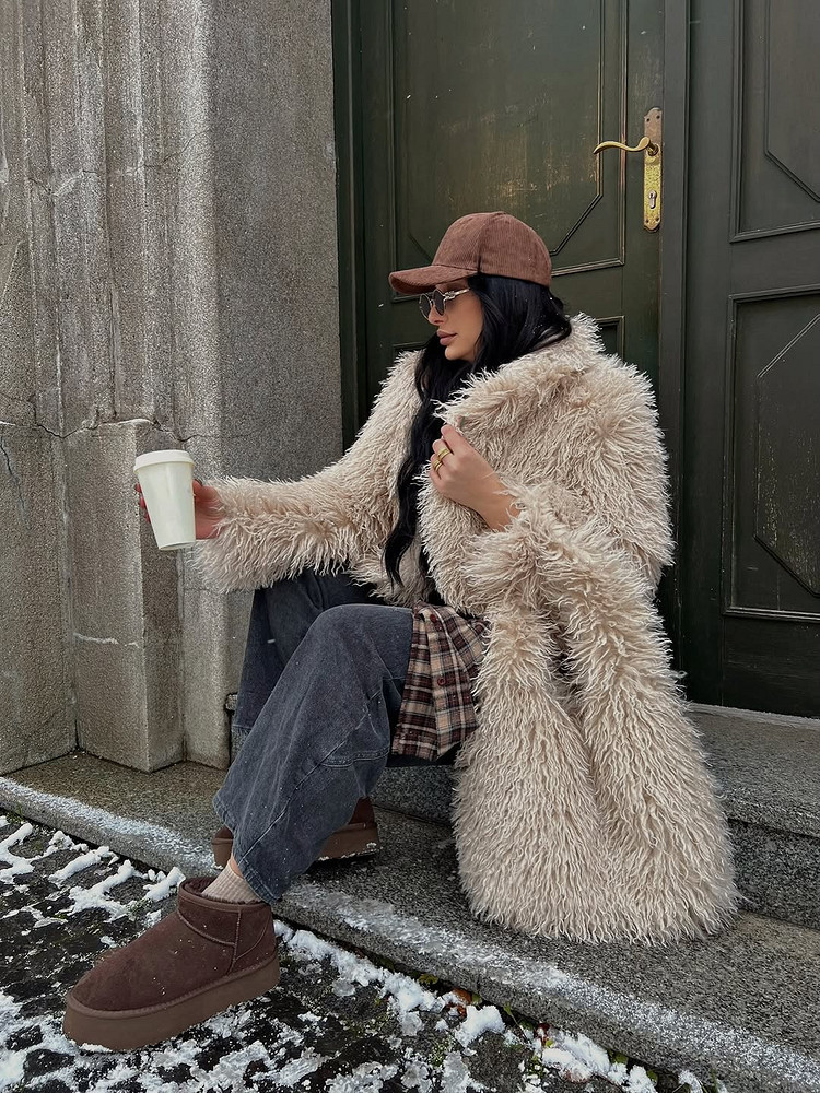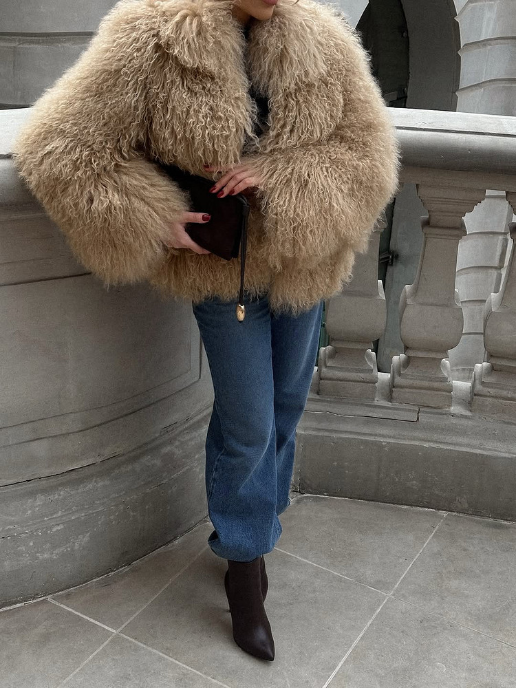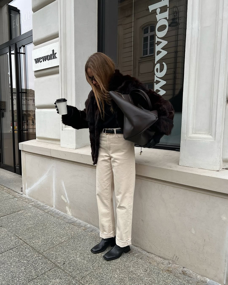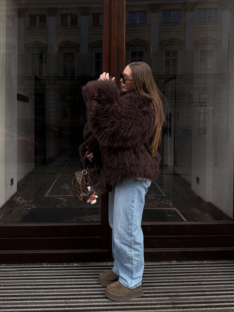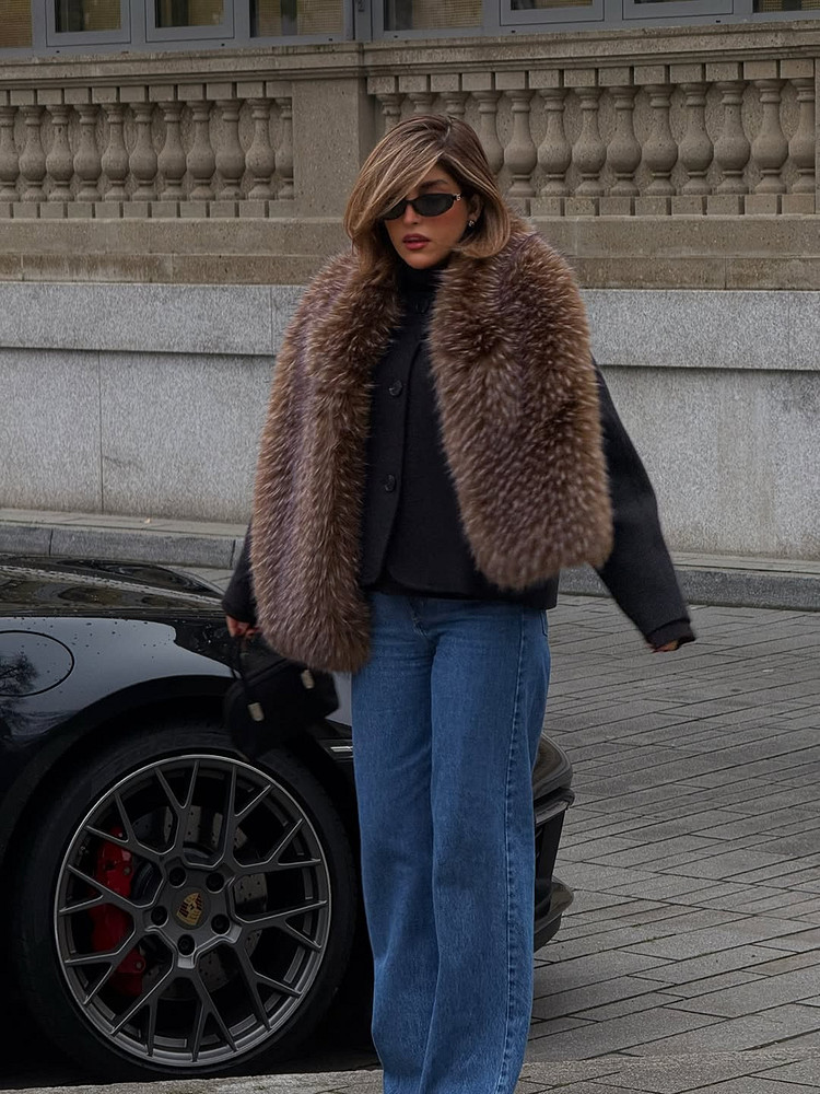 Джинсы и шуба — это как круассан с кофе: банально, но гениально. Луки с искусственной шубой и денимом строятся на принципе «дорого-дешево», когда объемная, заметная вещь уравновешивается чем-то максимально будничным. Бери прямые или широкие джинсы средней посадки, заправляй в них водолазку или надевай простую футболку — и коричневая или любая другая шуба завершит аутфит.