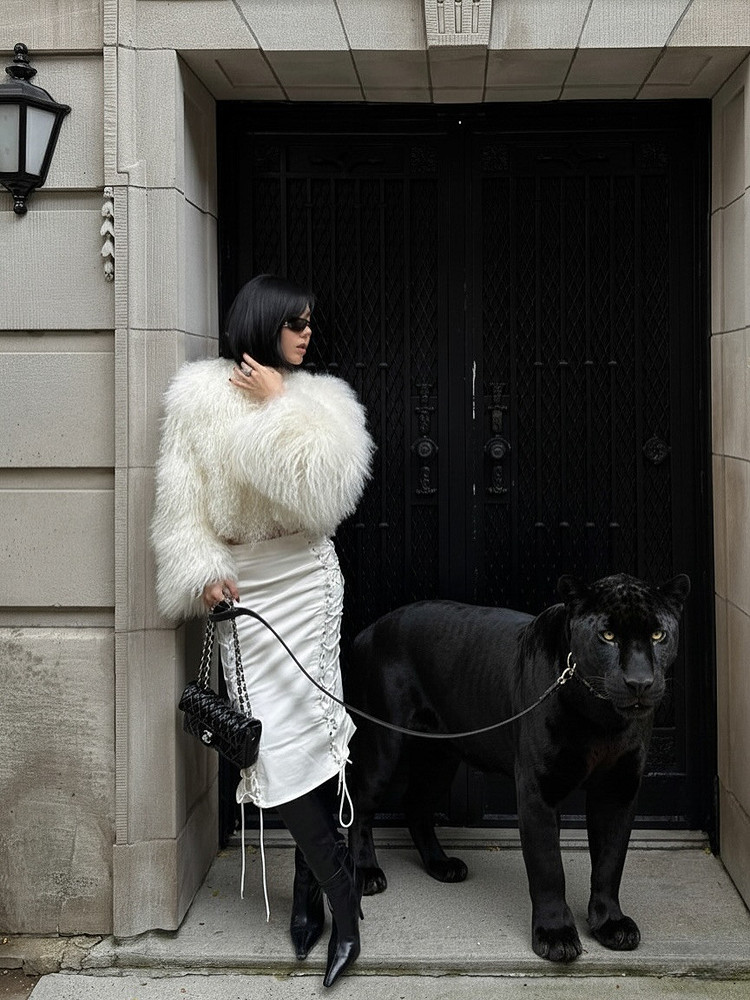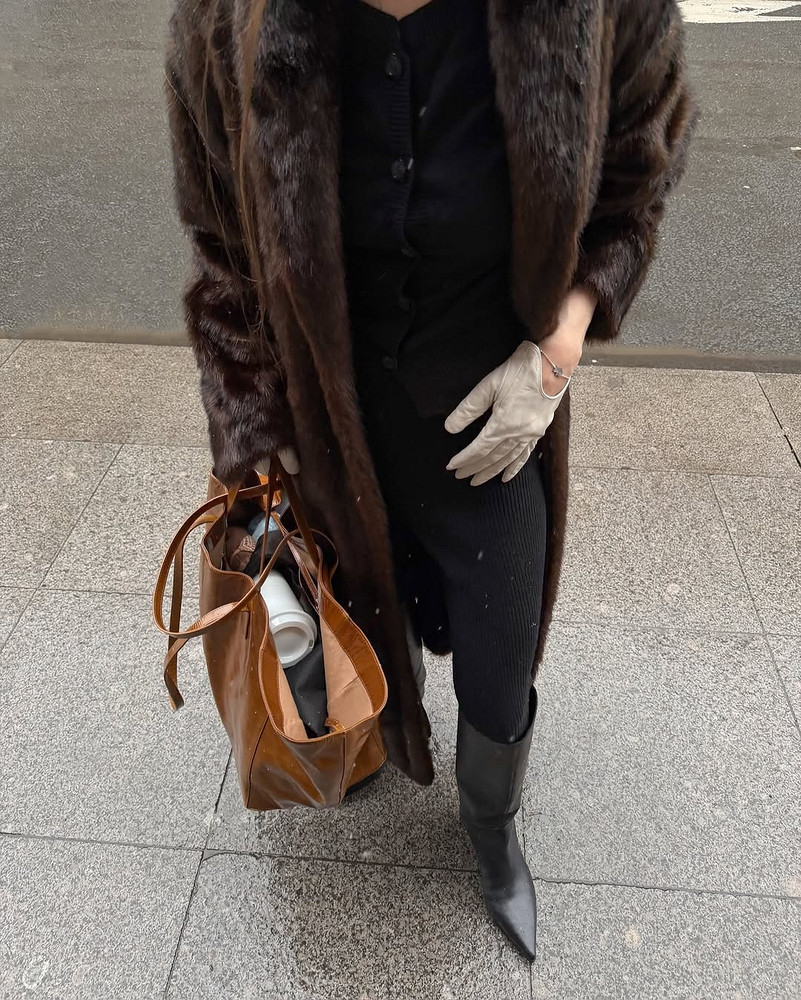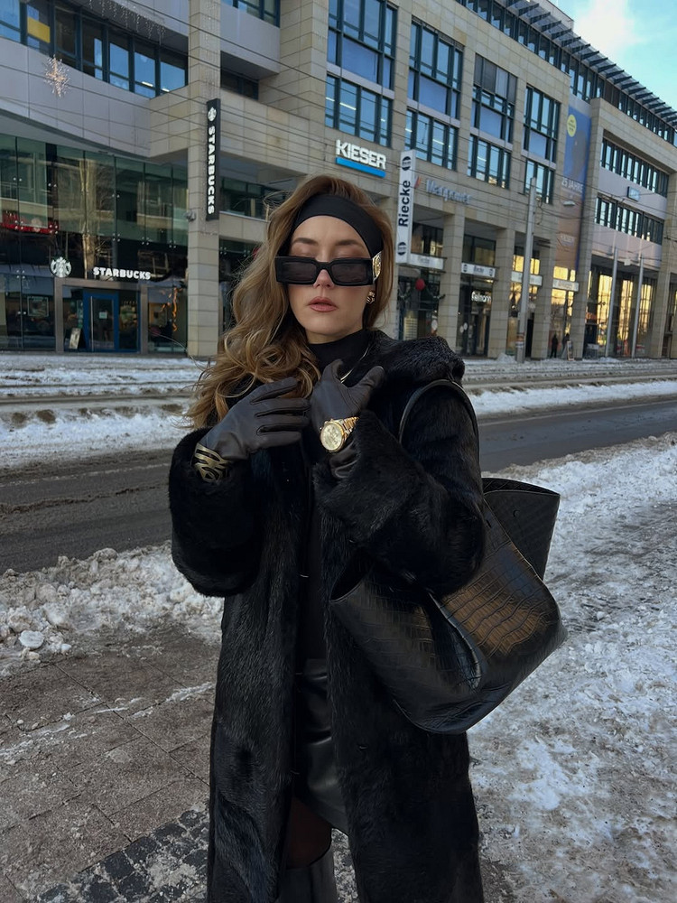 Если шуба короткая, добавь кожаную юбку миди и ботфорты, чтобы получить образ в духе Бриджит Бардо, но актуальный для 2026-го. Длинная модель требует более лаконичного низа: узкие кожаные леггинсы или брюки, чтобы не было эффекта «меха слишком много».