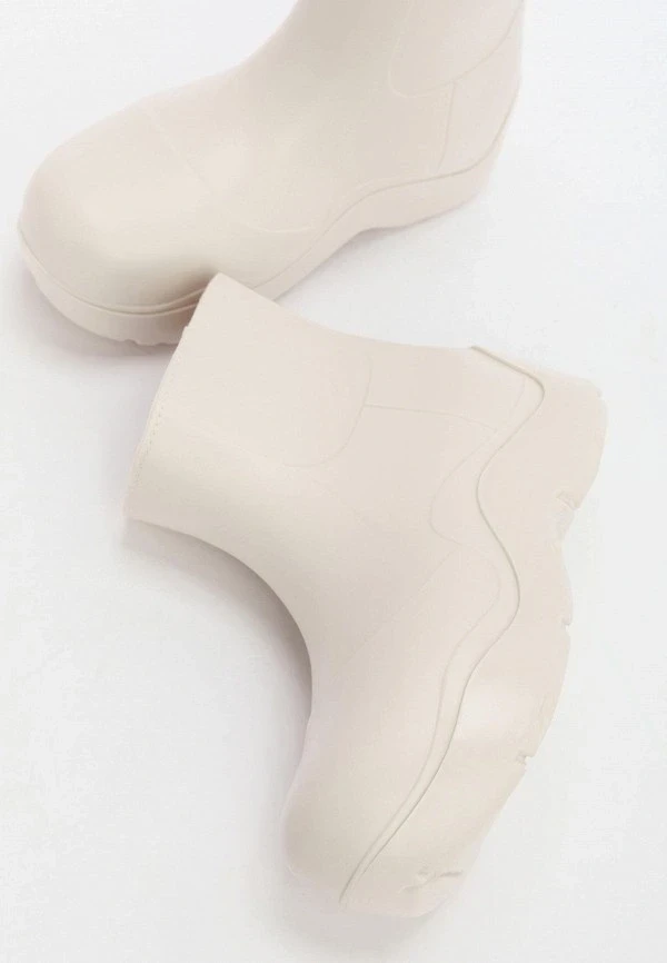 Если говорить про резиновые сапоги, то в этом сезоне главное — цвет. Молочный, пыльная роза, оливковый, теплый бежевый, туманный серо-голубой , лиловый и прочие нежные оттенки на пике популярности. Они действуют так же, как нейтральные тона в одежде: смягчают образ и делают тебя немного более «дорогой» на вид.