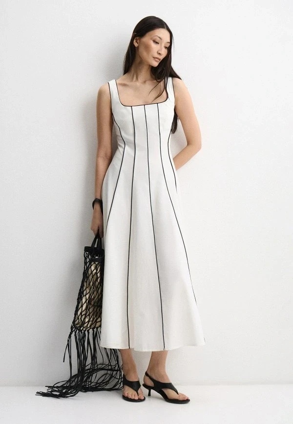 - Минималистичное молочное платье? Добавь к нему черные туфли с заостренным носком и блочным каблуком. Мгновенный контраст будет смотреться восхитительно.