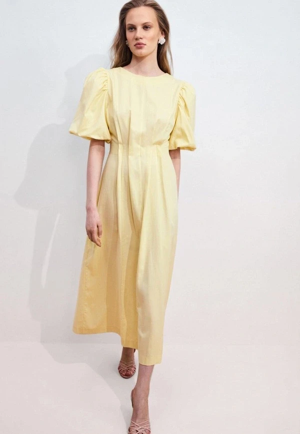 Для девушек невысокого роста: выбирай A-силуэт чуть выше колена и туфли в тон платью. Такой прием удлиняет линию ноги без всякого дискомфорта.