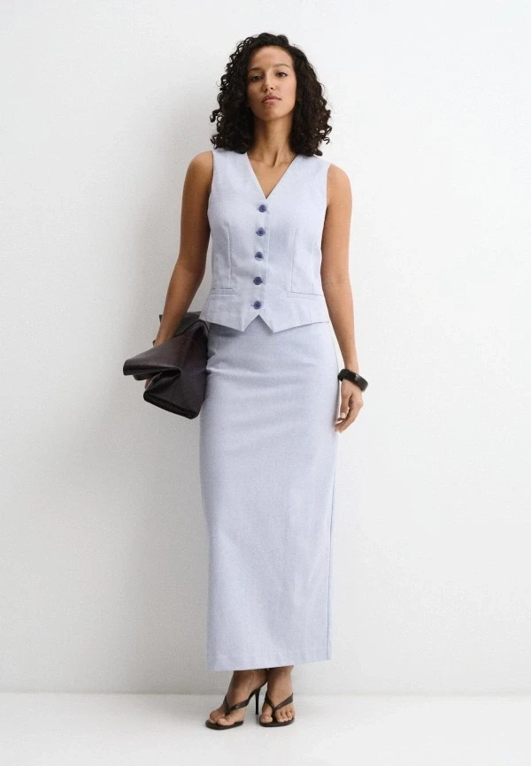 Важный момент: если ты заканчиваешь 9 класс и хочешь выглядеть чуть старше, костюм с юбкой — твой вариант. Только последи за тем, чтобы юбка была не короче середины бедра: иначе получится совершенно другая история.