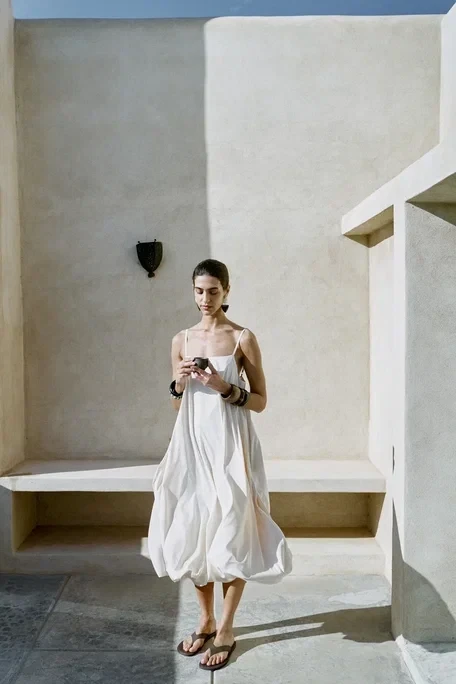 Главное слово сезона — пластичность. Не приталенность в старом понимании (корсет, зажатая талия, дискомфорт), а именно пластика: одежда, которая следует за телом, повторяет его движение, струится или мягко облегает, в зависимости от материала.