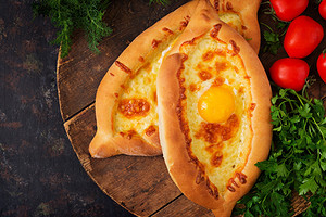 • По-аджарски — знаменитая выпечка в виде лодочки, начиненная яйцом и большим количеством сыра. По легенде, пирог придумали рыбаки. Блюдом угощали моряков, которые возвращались из плавания. Вид пирога напоминает рассвет над морем. Готовят из дрожжевого теста. Выпекают почти до готовности, после чего добавляют яйцо и продолжают выпекать пару минут. Яйцо при этом остается жидким. Именно этот вид чаще остальных заказывают в ресторанах, и возникает много вопросов о том, как правильно есть вкусное хачапури в форме лодочки. Об этом расскажем далее.