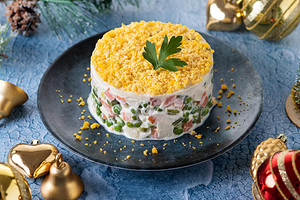 Несложный в приготовлении вариант праздничного салата, который станет украшением новогоднего стола.