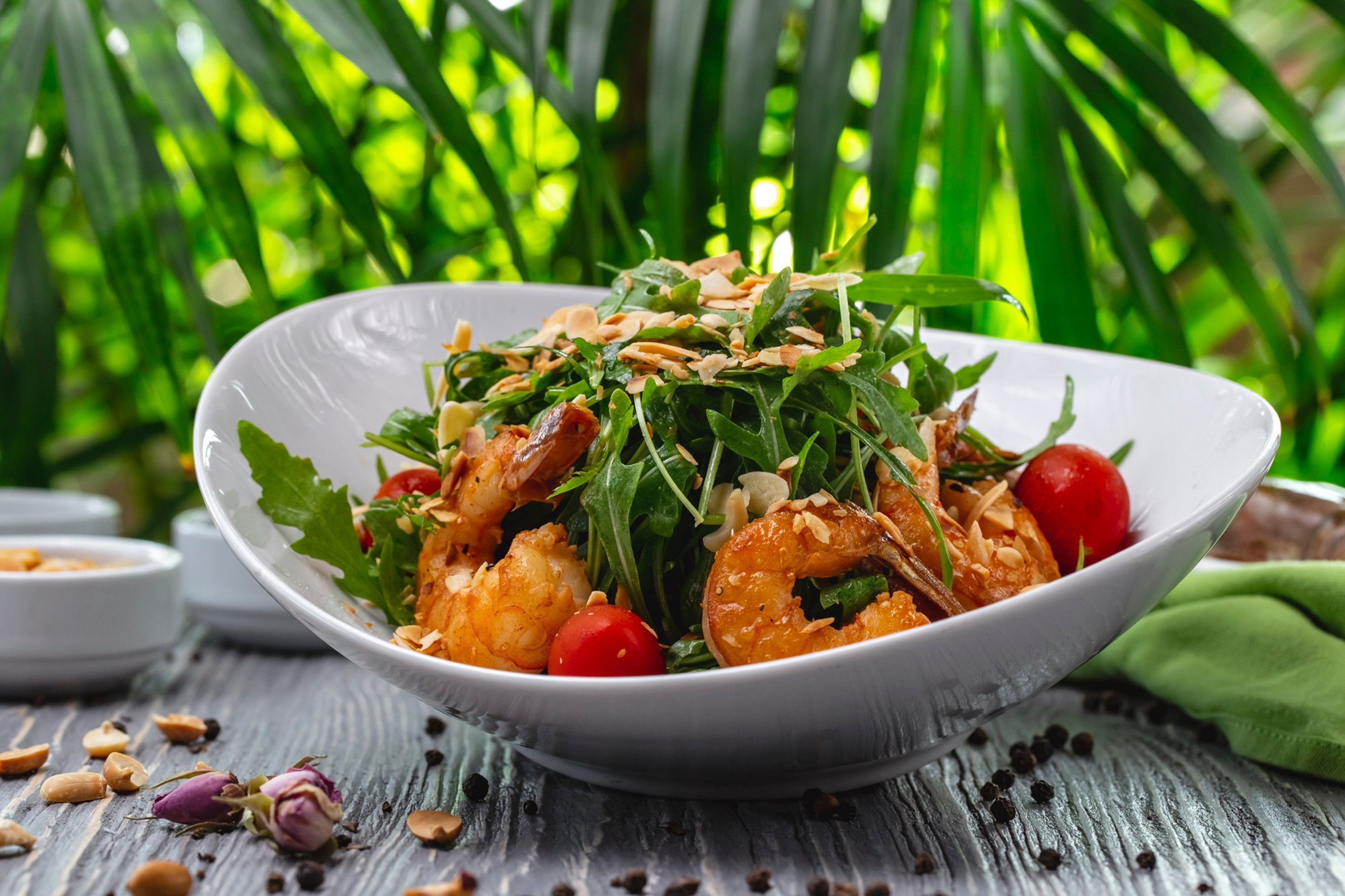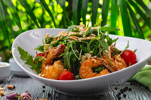 1 С руколой, креветками и томатами