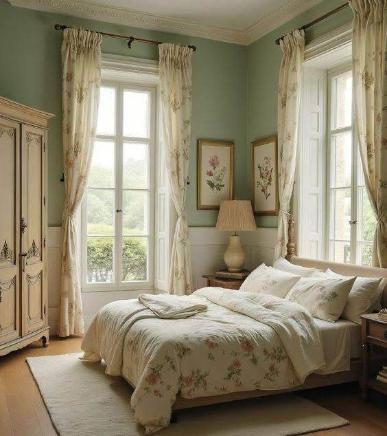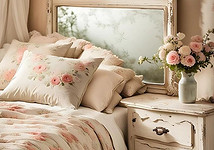 В интерьере спальни в стиле прованс не должно быть громоздкой мебели темных оттенков, которая визуально съедает пространство. Мебель должна встраиваться в интерьер, не перегружая его. Также не допускаются очень яркие, кричащие цвета. Желательно обеспечить максимум естественного света, поэтому шторы также должны быть светлыми и легкими. Комната должна производить впечатление теплой обстановки южной Франции.