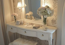 В интерьере квартиры в стиле прованс могут быть стеллажи или шкафы для книг, стилизованные под винтаж. Они могут быть выкрашены в белый цвет, или пастельный — сиреневый, оливковый, голубой. Хорошо будут смотреться старинные предметы, такие как трюмо или секретер. Письменный стол можно заменить бюро со столешницей, которая откидывается и закрывается на ключ.
