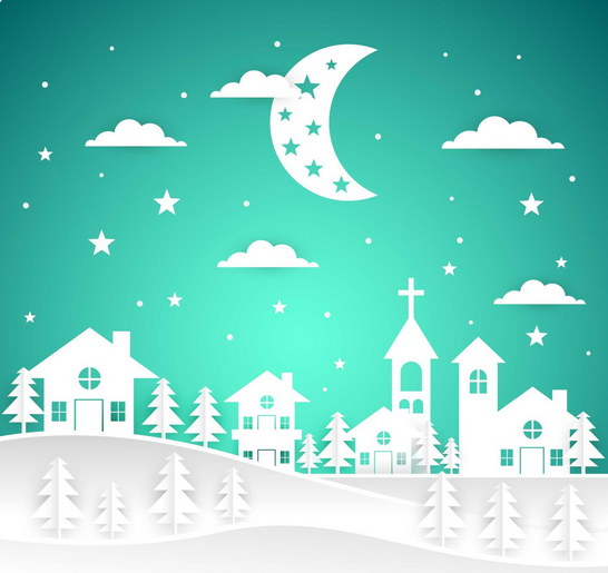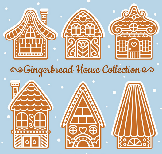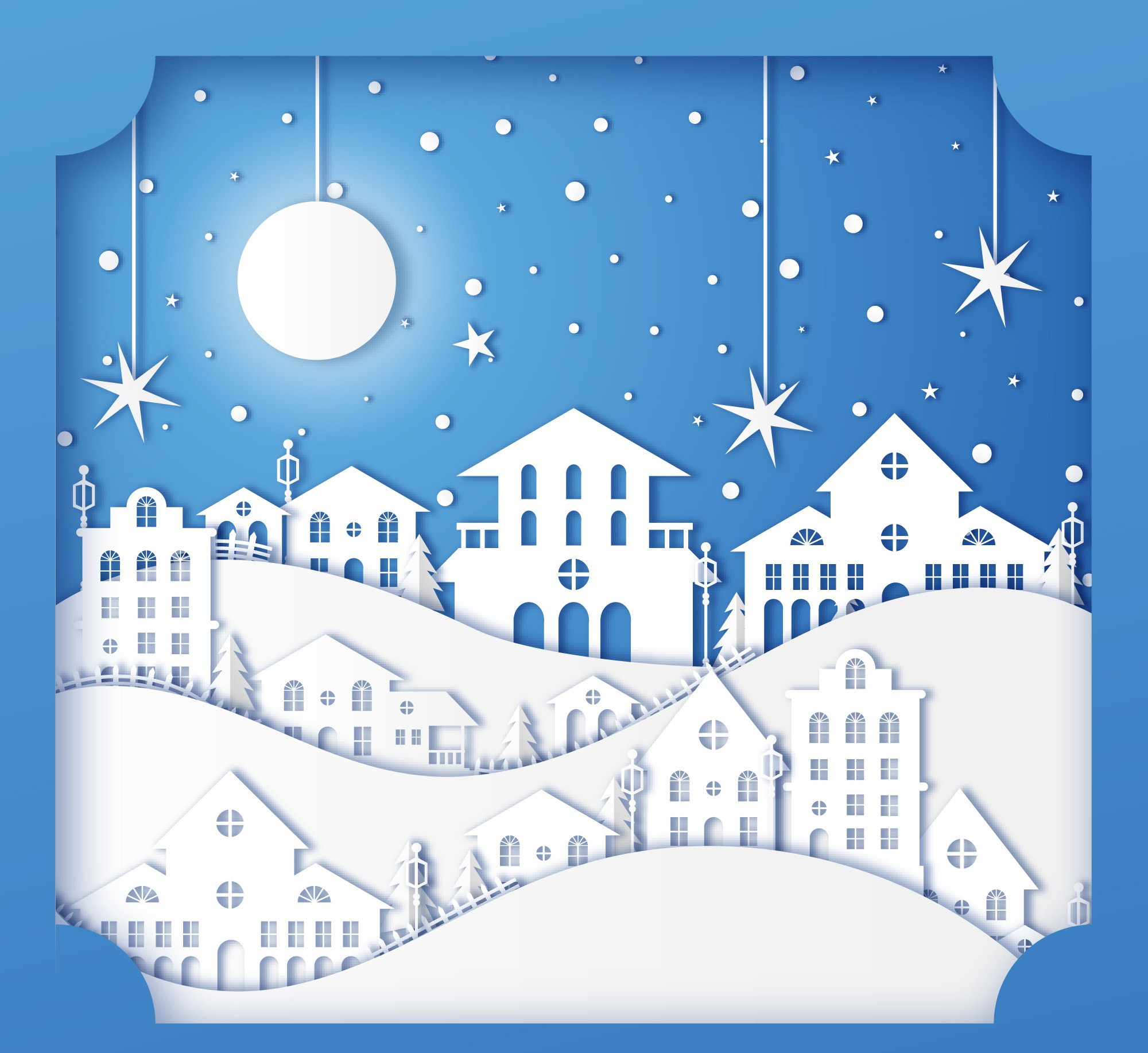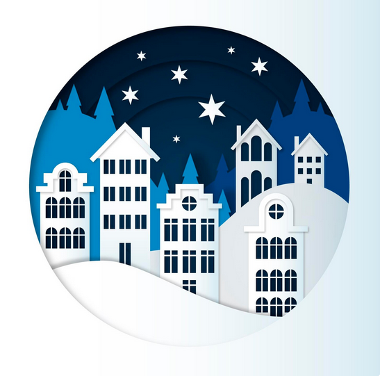 Сказочные дома, засыпанные снегом — традиционный мотив, который встречается и среди вытынанок на Новый 2026 год. На фоне могут быть снежинки, серп луны или сани Деда Мороза с оленями. Можно выбрать не обычный дом, а пряничный домик. Его можно раскрасить красками или фломастерами, нарисовать новогодний узор.