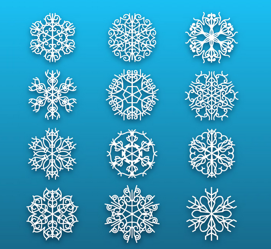 Снежинки со множеством мелких деталей вырезать сложнее, и стоит попрактиковаться на листе тонкой бумаги. Можно использовать белоснежную бумагу или светло-голубую, напоминающую зимний иней. Если у снежинки множество мелких деталей, часть из них можно вытянуть вперед, чтобы получилась ажурная фигура. Для создания объемной 3D модели понадобится несколько плотных листов. Они накладываются друг на друга и склеиваются в нескольких местах.
