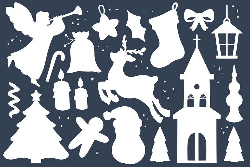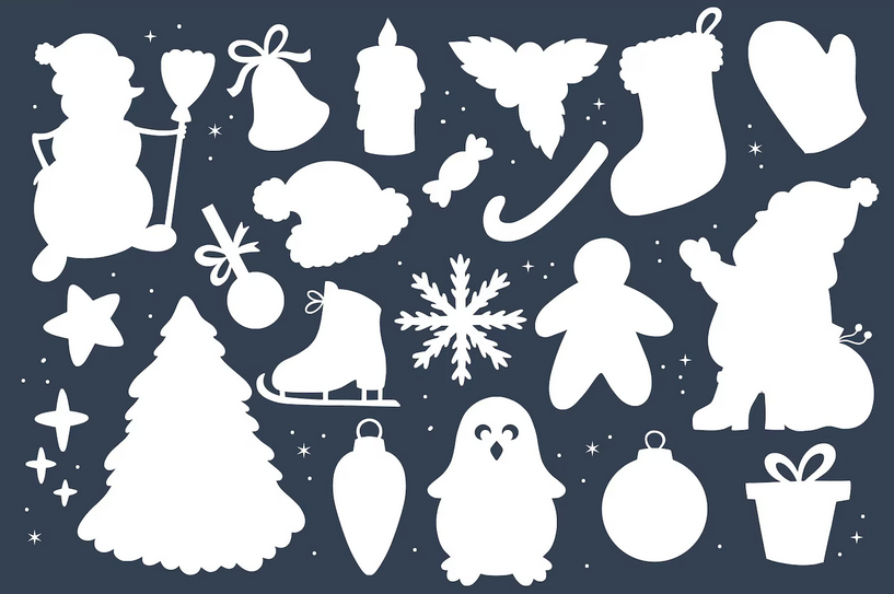 - Фигура — силуэт персонажа, звезды, елочки или колокольчика. Может быть сплошными, или с несколькими крупными деталями.