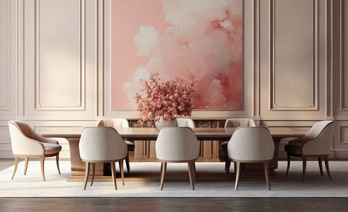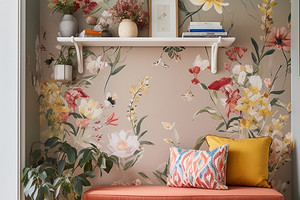 Одним из трендов 2026 года стало переосмысление традиционных мотивов, в том числе и в обоях. Цветочные принты, шелкография, японские пейзажи красиво сочетаются с темной мебелью и традиционным стилем. Цветовая гамма не слишком яркая, включает припыленный синий, травянистый зеленый, оттенки земли, светло-розовый и желтый. Сочетание традиций и современной элегантности поддерживает классику, но делает ее более свежей и интересной.