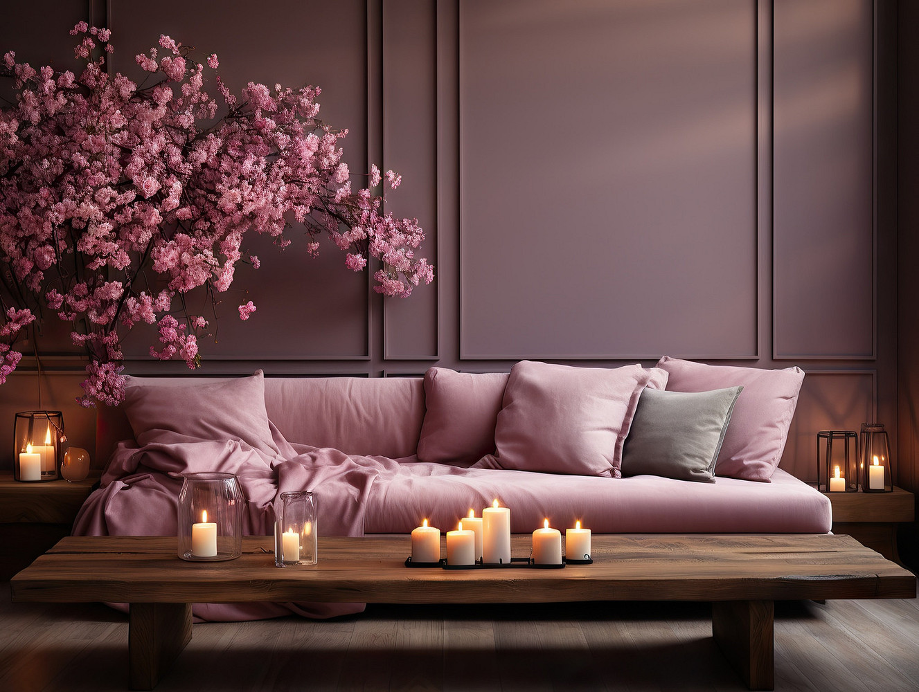 - Сливовый — благородный теплый оттенок не отвлекает внимание от декора и отделки, и при этом не выглядит скучным. Красиво будет смотреться в интерьерах в стиле бохо, эклектике и ар-нуво.
