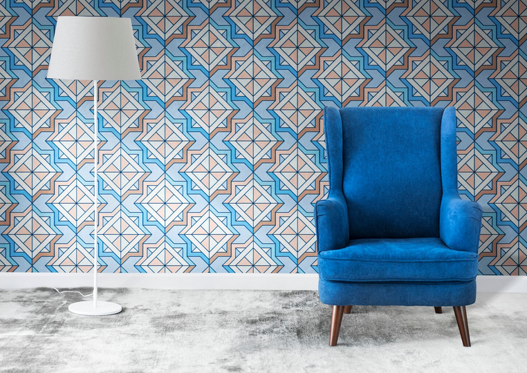 В 2026 году в дизайне интерьера тренд на модерн. В современном прочтении стиль проявляется в ярких цветах и узорах. Абстрактные линии создают неповторимый рисунок, как на картинах художников. Встречаются геометрические фигуры: ромбы, полоски, круги и любые другие, какие только подскажет фантазия. Принты служат не только для красоты, но и помогают сбалансировать пропорции помещения. Например, чтобы зрительно расширить пространство, используют тонкую вертикальную полоску. Создать объем помогут ромбы и диагональные полоски.