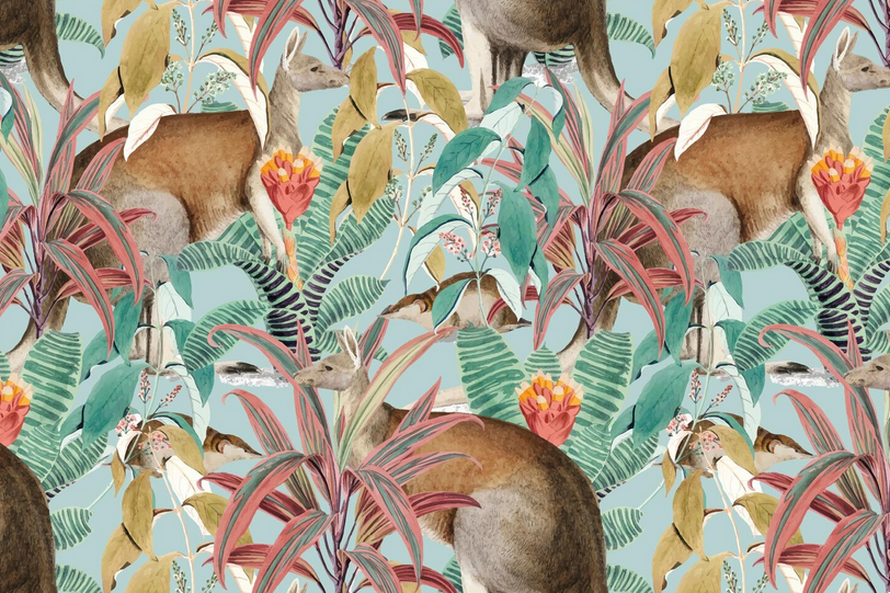В моде оформление стен изображениями животных и растений. Это совершенно новое исполнение флористических мотивов. Появляется растительный принт с крупными бутонами, с полем с цветами и травами, зачарованным лесом или ветвями деревьев. Животные встречаются разнообразные: от стайки птиц до представителей саванны и джунглей.