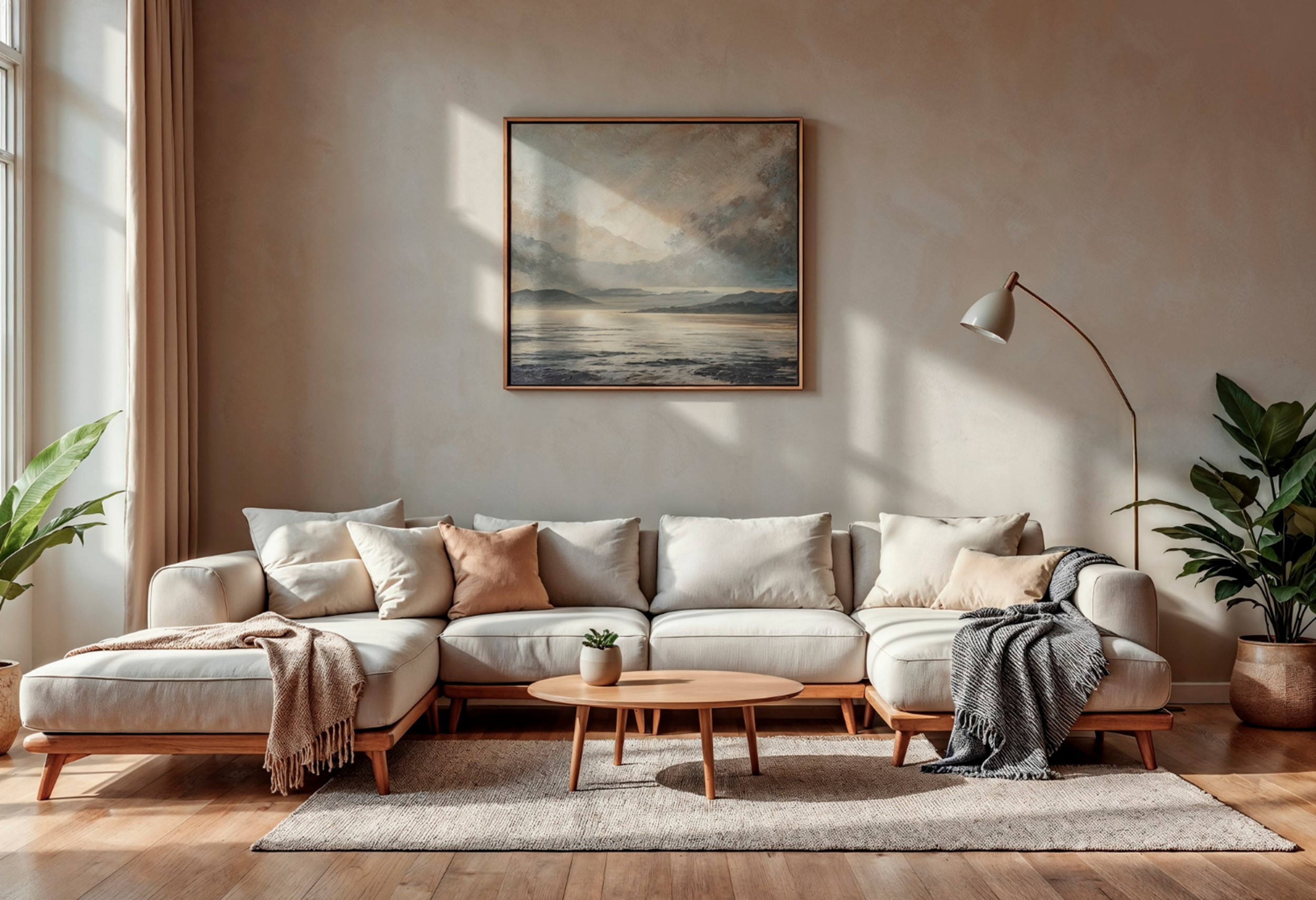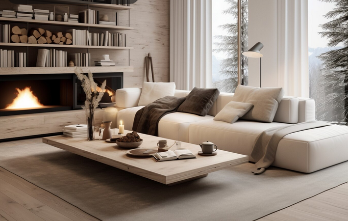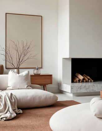 Обивка мягкой мебели может быть выполнена изо льна, шерсти, рогожки, хлопка или букле. Материалы с выраженной текстурой, неровным плетением и натуральным составом подойдут для простого и лаконичного интерьера и придадут ему уют. Добавь натуральные веточки с листочками и ягодами, сухоцветы в вазах, чтобы воссоздать дух природы.
