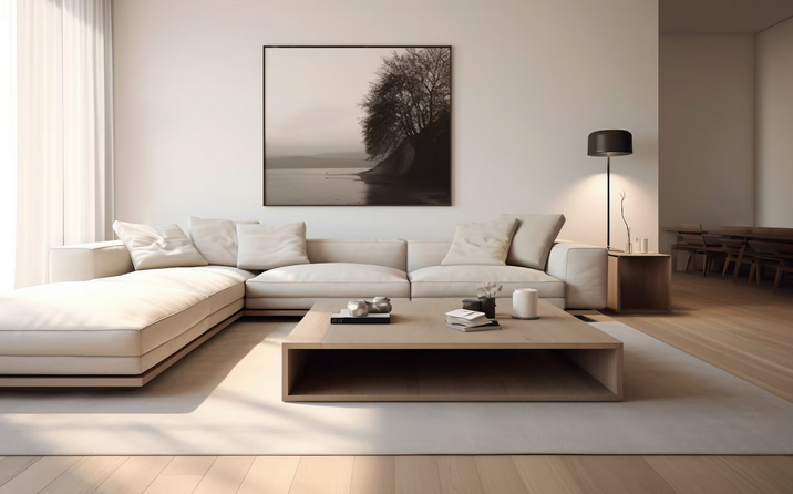 Стиль выделяется среди других минималистичных направлений отсутствием симметрии. Предметы не расставляются строго по линейке на равном расстоянии, наоборот — приветствуется свободная планировка и асимметрия. Линии должны быть плавными, неправильными и свободными. Мебель может быть с чуть изогнутыми линиями, полки вешают на разной высоте, а на стенах допустим неравномерный окрас с переходом цвета. Эти детали придают интерьеру более домашнее и теплое настроение, дарят спокойствие.