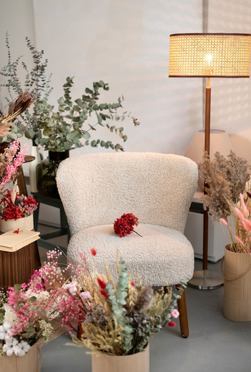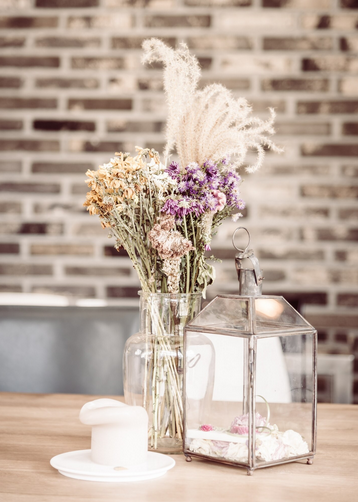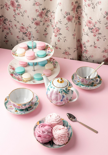Для декора используют старую посуду с росписью и текстиль с рисунком. Цветочки могут быть везде, от полотенец до обивки мягкой мебели и штор. На окна стоит поставить цветущие растения в горшках, а обеденный стол украсить букетом цветов.
