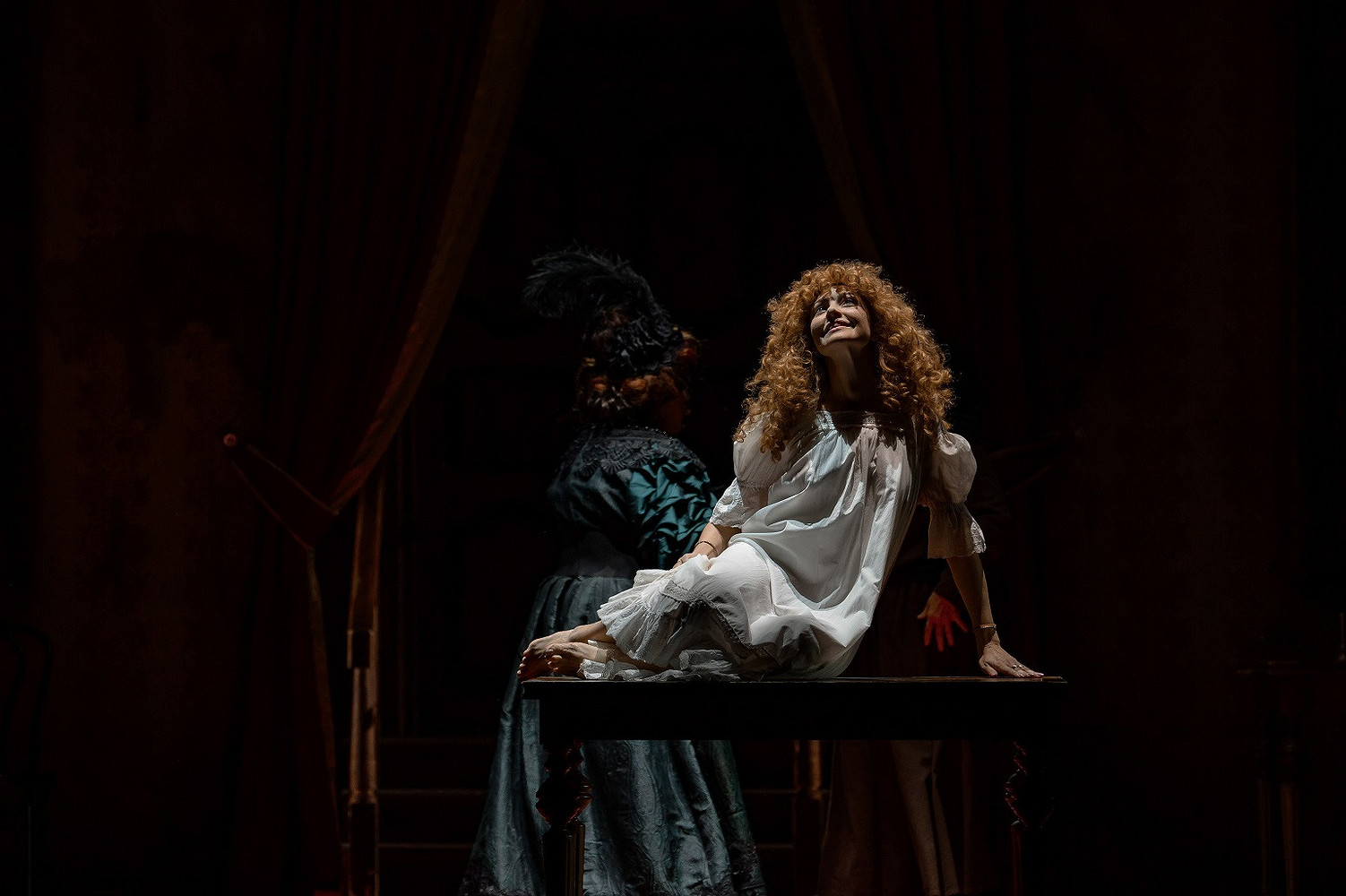 «Яма» – это история о женщинах, попавших в мир, где кажется, что будущего нет. Провинциальный публичный дом становится замкнутым пространством со своими правилами, страхами и надеждами. Декорации на сцене точно передают эту обстановку: пыльные портьеры, тусклый свет, старые зеркала, плотный табачный дым – все здесь словно говорит о безысходности. Но именно в этих обстоятельствах особенно остро проявляется главное – желание быть любимой и услышанной.