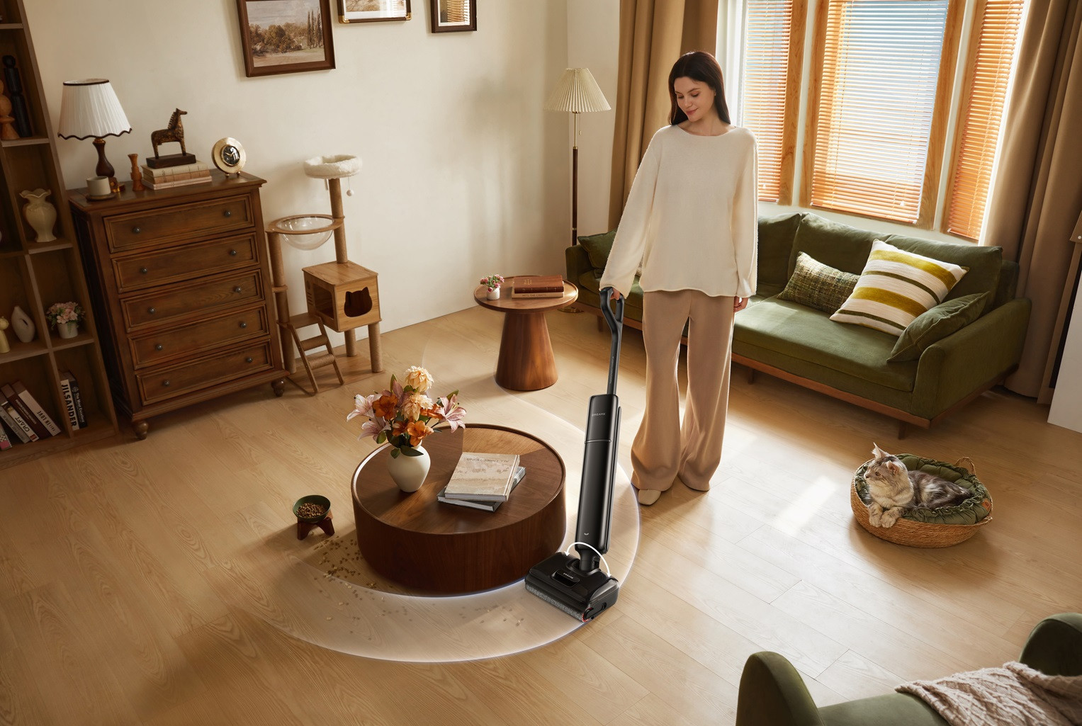 Новая модель сочетает компактный форм-фактор с высокой силой всасывания и системой интеллектуального обслуживания, позволяя выполнять полноценную уборку квартиры одним устройством, включая труднодоступные зоны под мебелью.