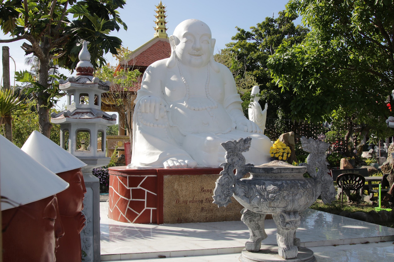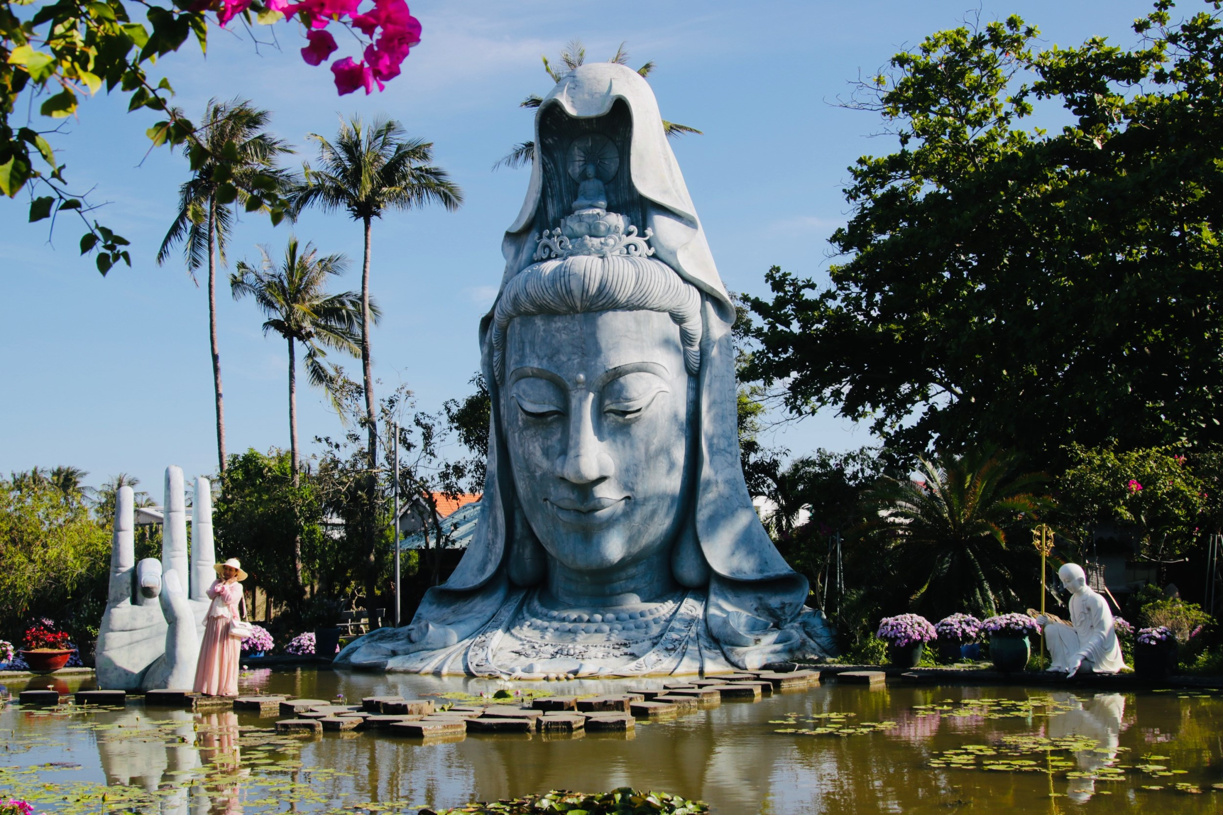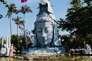 - Неподалеку от города, в коммуне Ан Чан ищи легендарную пагоду Тхань Лыонг, построенную с использованием кораллов, ракушек и кокосовой скорлупы. Не пропусти идеальную точку для фото — статую Будды Куан Ам, высотой около 7 м, приютившуюся посреди озера.