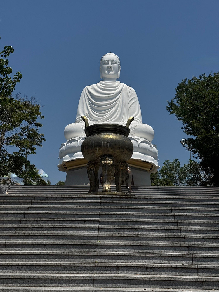 - Пагода Лонгшон и Белый Будда. Это одна из самых известных буддийских святынь Нячанга. Огромная белая статуя Будды возвышается на холме Трайтхю и хорошо видна из разных точек города. Наверх ведут ступени, а в награду открывается панорама Нячанга.