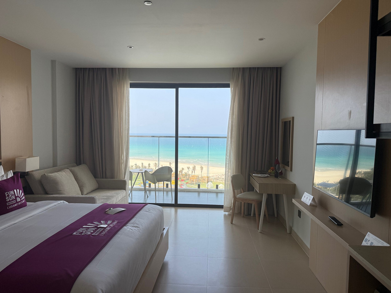 Один из интересных вариантов — месяц назад открывшийся FUN&SUN SENSES Lugano Resort 5*. Пляжная инфраструктура включает лежаки с зонтиками, гамаки под пальмами, беседки и кабаны. В ресторанном меню: вьетнамская и европейская кухня, есть пляжный бар. Для семей с детьми работает детский клуб Toucan, а для взрослых — мастер-классы по ароматическим маслам, приготовлению национальных блюд, чайные церемонии и другие активности.