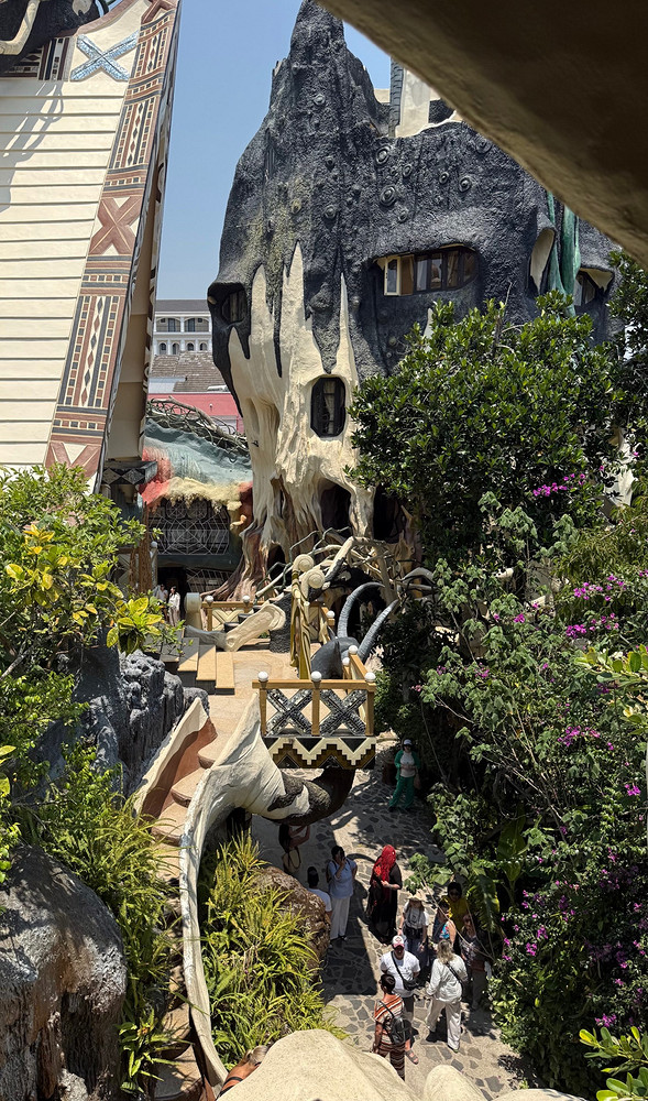 Путешественники с детьми наверняка не упустят из виду гостевой дом Hang Nga, или, как его чаще называют, «Сумасшедший дом». Ведь он входит в десятку самых необычных отелей мира. Со стороны визуально напоминает сны Дали и архитектуру Гауди одновременно. Ни одного угла — все стены округлые, лесенки закручиваются спиралью или перекинуты с одного корпуса на другой. Ночью в комнатах спят постояльцы, а днем к прогулкам приглашаются обычные туристы.