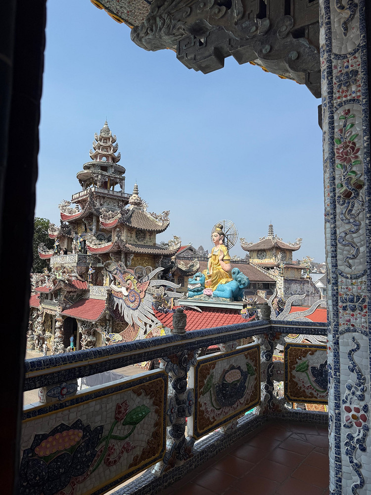Одна из главных точек притяжения — пагода Линь Фуок, известная мозаичным декором из осколков стекла и керамики, из-за чего ее часто называют «пагодой из битой посуды». Собственно, так оно и есть, материал для облицовки собирался «всем миром» — вьетнамцы несли раритетные чашки и плошки из бабушкиных сервизов.