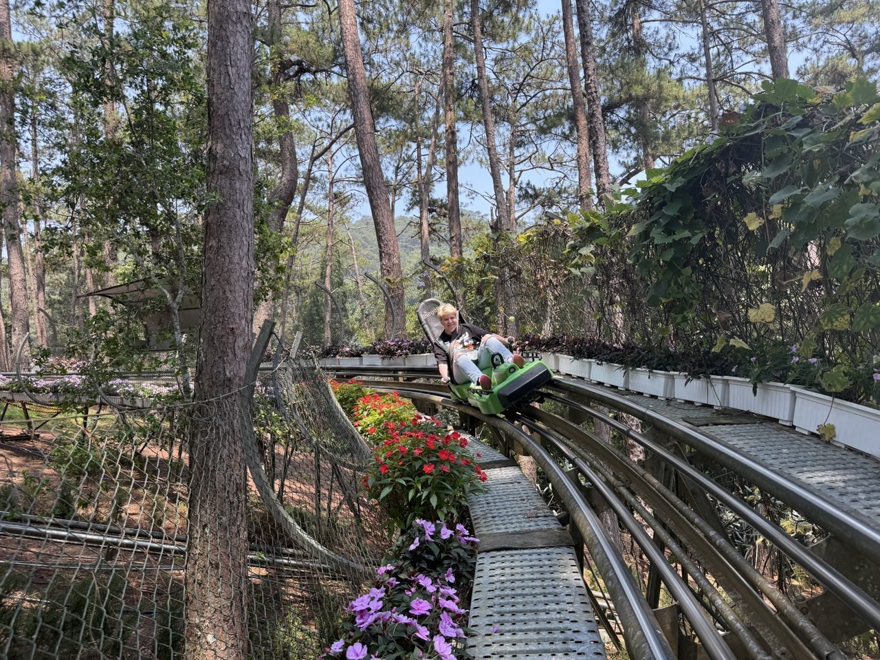Еще одна эффектная точка — стеклянный подвесной мост в туристической зоне «Долина любви». Он открылся буквально пару лет назад и быстро стал одной из заметных локаций Далата. А если хочется классических природных впечатлений, в программу обычно включают водопады. Один из самых эффектных способов добраться до них — прокатиться на электро-тележке по склону сквозь джунгли. Этакие «американские горки» с роскошным видом в конце!