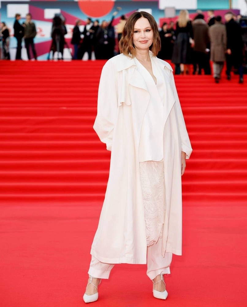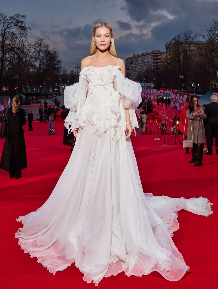 Белый на красной дорожке — всегда вызов. В этом году на ММКФ нежные оттенки зазвучали особенно громко. Кристина Асмус выбрала настоящую сенсацию: длинное платье со шлейфом, который тянулся за ней и заставлял оборачиваться каждого фотографа.