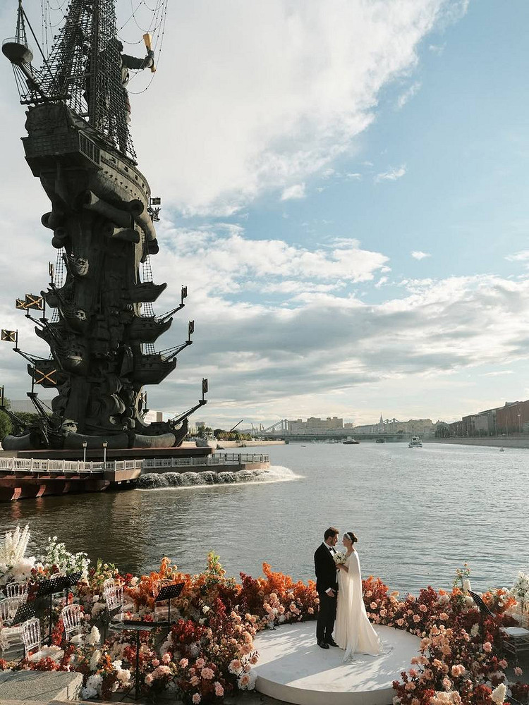 Но уже вечером следующего дня актриса сама поделилась видео с праздника, на котором можно разглядеть все детали. Торжество проходило в центре Москвы, на Красном Октябре. Выездная регистрация была организована прямо на набережной.