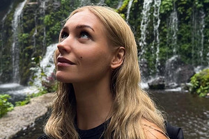 На фоне водопада Кристина и сфотографировала своего мужчину.