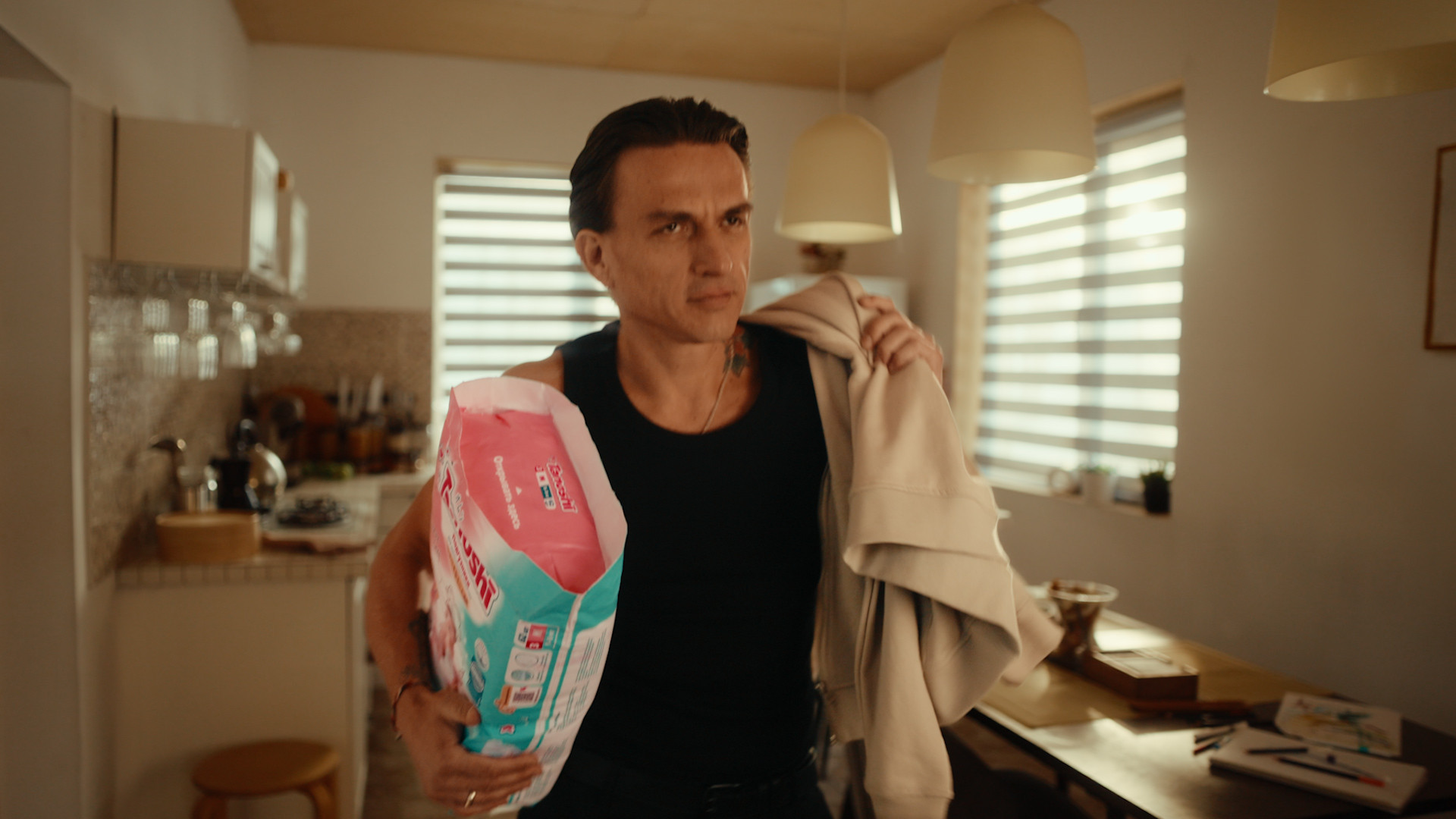 В кадре – танцующий папа среди детских игрушек и повседневного хаоса, который напоминает нам, что быть родителем – это умение наслаждаться моментами, даже если они далеки от идеальности.