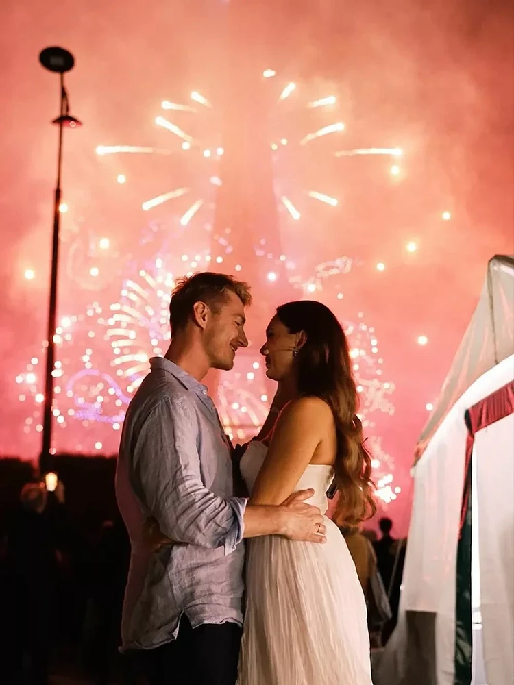 Также в соцсети супруги выложили кадры, как провели праздничный вечер — дома, с горячей ванной и шампанским.